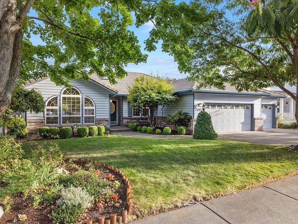 Welcome to this cozy and inviting single-level home! This stunning Brookdale Meadows home blends comfort and style. The bright kitchen has been thoughtfully updated with new granite countertops, freshly painted white cabinets, and a newer refrigerator. Formal dining and living areas with coffered ceilings and a family room with a gas fireplace and vaulted ceilings offer elegant touches. The guest bathroom boasts a new shower (2023) and updated hardware (2024). Other features include a bedroom/office with built-ins, central vac, three-car garage, gazebo, and playhouse/studio with power. This home is move-in ready with fresh paint throughout, energy-efficient heating, and cooling. Close to schools, shopping, and hospitals!