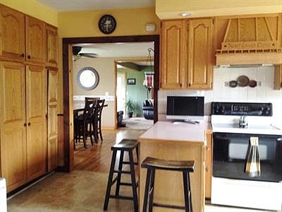 Pretty as a picture! 1900's Farmhouse nestled on a great manicured 1 acre lot. 2 story, 2 car garage/barn with open 2nd floor great for storage, workshop, rec room or quiet get-away space. House has 3 nice sized bedrooms, fully applianced oak kitchen, large dining room with hardwood floors & built-in cupboards, living room with new carpet & a room for an office or den. 2 rooms in the rear of the house currently used for the seller's business, but would be great office, mud room, playroom...etc. This house has lots of room for all your needs!