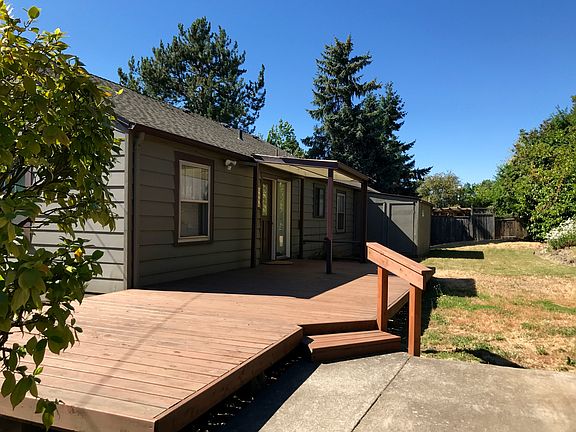 This sweet 1940s, College Hill home has been well-loved and maintained. It is spacious and filled with lots of natural light from large windows. Located in a great neighborhood with easy access to everything - local shops and restaurants, UO, LCC, neighborhood schools, parks, downtown, Valley River Ctr, bus line. Clean, 2+ bedroom, 1 bath home has charming features like coved ceilings, crystal doorknobs, banister stairway, original oak hardwood floors. It is approx. 1,700 sq. ft. with forced air gas heat. Basic Yardcare is included! The open, carpeted living room is next to a formal dining room with oak floors. A large kitchen includes appliances and a cute, breakfast bar nook. A big laundry room has lots of additional storage. Two lovely bedrooms downstairs have large closets and hardwood floors. Upstairs is another cozy, carpeted bedroom along with a small bonus room ~ both have sloped lower ceilings. The bathroom has a tub/shower and oak cabinets. A nice office/den with hardwood floor has a door that leads onto the back yard deck. A large, private driveway in back provides off-street parking and entry through the family room/office. The large, back deck provides outdoor living space. Basic yardcare is included for the mature landscaping of the large front and back yards. A completely separate, one bedroom unit is adjacent on the property and occupied. Please respect their privacy. Call 541 520-6810 or email for questions or viewing! It is available now. Please respect the property and do not disturb tenants. Basic yard care is included.