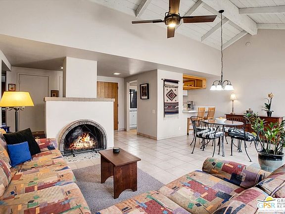 Experience the Desert Lifestyle at Its Finest at Canyon Sands. Welcome to this move-in ready 2 Bed / 2 Bath condo in the vibrant and highly desirable Canyon Sands community in South Palm Springs. Nestled within the Melody Ranch neighborhood, this home offers more than just comfort and style - it's a gateway to an active, relaxed desert lifestyle. Designed by renowned architect Richard Finnegan, this thoughtfully planned 1,188 sq. ft. condo lives like a single-family residence, with only one shared wall (the garage) offering both privacy and peace of mind. Inside, the open layout is complemented by contemporary updates including Italian granite kitchen countertops, new shower enclosure, countertop, and toilet in the primary bathroom, as well as ceramic tile flooring throughout the condo. The spacious 2-car attached garage offers convenience and extra storage for bikes, golf clubs, or seasonal gear. But it's the community that truly sets this property apart. Canyon Sands is a haven for those who embrace both relaxation and recreation. Spend your mornings swimming laps in one of the seven resort-style pools, enjoy afternoon games of tennis or pickleball on lighted courts, or unwind in one of the two saunas. Whether you're into active living or simply soaking in the desert sun with neighbors and friends, there's always something to do and someone to enjoy it with. With monthly HOA dues that include essentials like Spectrum cable and Wi-Fi, earthquake insurance, and utilities; sewer, water, and trash, your lifestyle here is as worry-free as it is enriching. Just minutes from the vibrant heart of downtown Palm Springs and PSP airport, you'll enjoy easy access to boutique shopping, acclaimed dining, and scenic hiking trails. Whether you're seeking a full-time residence or a weekend escape, this home offers the perfect blend of connection, convenience, and classic desert living.