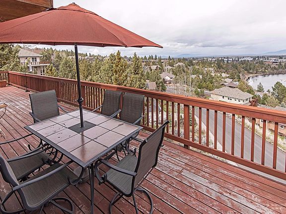 Three levels of Decks and Patios with Sweeping Views of Smith Rock, the Deschutes River and Pilot Butte in this captivating Awbrey Butte Home. Huge Corner Lot offers Water Feature & Low Maintenance Landscaping. Open Concept Living with Main Level Master Bedroom. 3 Additional Spacious Bedrooms on Lower Level. Private Entrance to 3rd Level which could be guest quarters, home office or teen suite for 5 or 6 bedrooms. Close to downtown Bend, River Trails, Shopping & Dining to complete your Bend Lifestyle