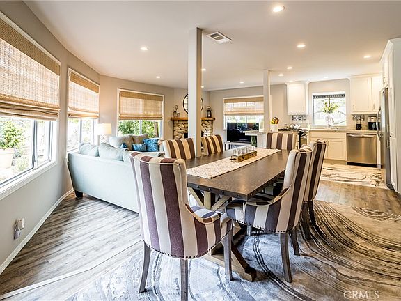 This three bedroom, two bath house located on Lodge Hill has a number of unique features which need to be seen to be truly appreciated. The most unique aspect of this house is the fact that it has NO adjacent neighbors. The property is on a bullnose created by the intersection of Pineridge, Newport and Kerry. The current owners recently purchased the lot next-door, putting this house on its own tiny island. The construction and orientation of this house allows for expansive views out the large windows, which are canted in a way that makes it feel like you are looking outside through a curved wall of glass. The first level consists of an open floorplan with the kitchen, dining room and living room, complete with a wood-burning fireplace. The updated kitchen boasts granite countertops and stainless-steel appliances. The downstairs also has a bedroom and 3/4 bath, allowing for single level living, if that ever becomes a necessity. The upstairs has two large bedrooms and one 3/4 bath. Both bathrooms have been completely updated and showcase wave-like tile in the showers and ocean inspired flooring tile. The orientation of the house, the landscaping and the bonus lot create a comfortable feeling of privacy. The enormous second-story deck has awesome views of the Santa Lucia Mountains. At night, gaze up at the Milky Way while sitting in the hot tub viewing an entire sky filled with stars above the silhouetted mountains. The beautifully landscaped and maintained yard includes one of the coolest “oak tree family” sets of trees I have ever seen in Cambria as well as a fenced in, private flagstone patio. The two-car garage has also been updated, with new garage doors and a resurfaced floor.