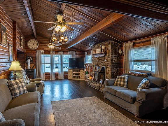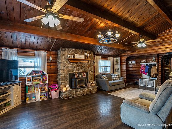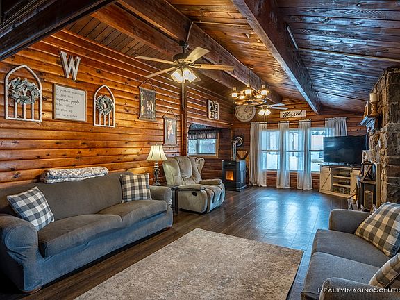 SURROUND yourself with the warmth of wood and the charm of the country in this gorgeous log ranch home! Open floorplan of living room, dining room and country kitchen warmed by fireplace are perfect for entertaining while staying nice and cozy! Two car garage features additional workshop/storage space provide plenty of space for all of your additional storage needs! A home for all seasons, this property has a beautiful front and back yard to enjoy from spring to fall and into winter, with an incredible view over the valley from the front yard! Come home to the country and let nature surround you! Set up your private showing now, don't procrastinate and miss out!
