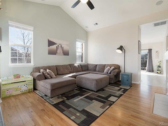 Don't miss out on this ideal Ranch home in Sterling Hills! Tons of move-in ready features, meticulously well maintained, lots of inclusions, and ready for your next chapter! This Richmond Homes model is situated on a corner lot boasting great curb appeal with fresh exterior paint against classic brick, covered patio, new lighting, poured concrete side yard access and an insulated two car garage with tons of additional storage. The glass storm door and tile entry bring you into a 12' vaulted ceiling living room featuring custom built-ins, a gas fireplace, and real wood floors throughout the main areas. Fresh paint on most walls, custom quarter round baseboards, all recently upgraded fiber privacy blinds on windows, updated Decora switches and lighting, and 9' ceilings are found throughout as well. French doors off the main room lead you into the front guest room which has a large window with lots of natural light and a closet, making it the perfect flex space for your needs. Large kitchen has an eat-in area, ample storage with custom features, and upgraded stainless appliances featuring an induction cooktop and even induction pots and pans that are all included! A laundry room with new cabinets, good sized guest bedroom and bath are all located down the hall, opposite a spacious master with walk-in closet and a great master bath with custom features. The backyard is fully fenced and has been professionally landscaped, offering irrigation system, lighting, and even wired for audio! The 14' x 24' stamped concrete patio and firepit area with retaining wall and artificial turf is less than 2 years old and perfect for outdoor entertaining! All kitchen appliances and security system with 3 cameras and DVR will be included. Close to lots of shopping and public transit, this Aurora gem will not last long!