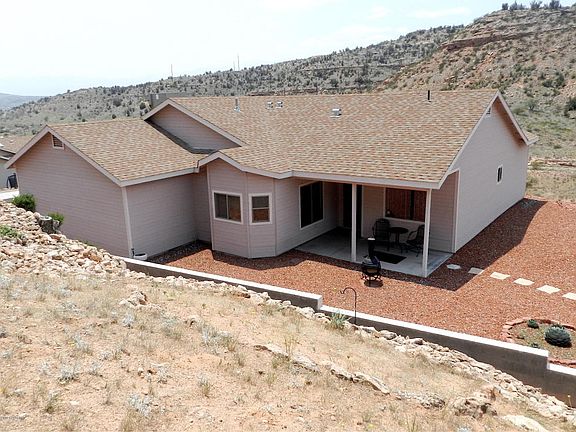 Hillside Home with panoramic views from Mingus Mountains to the red rocks of Sedona. Enjoy fabulous sunsets and starlit nights from this peaceful location. Close to hiking/biking trails in the forest and Oak Creek. This well-maintained, newer 3BR, 2BA home is immaculate, move-in ready, and features an open floorplan w/ southwestern decor, 2 patios plus extensive low-maintenance landscaping with cactus, wildflowers, intricate rock work and steps/paths to elevated sitting areas for enjoying nature's best. Plenty of room on this 2.67 acre property for privacy and your hobbies. Great open rural feeling with majestic views, yet close to all amenities.