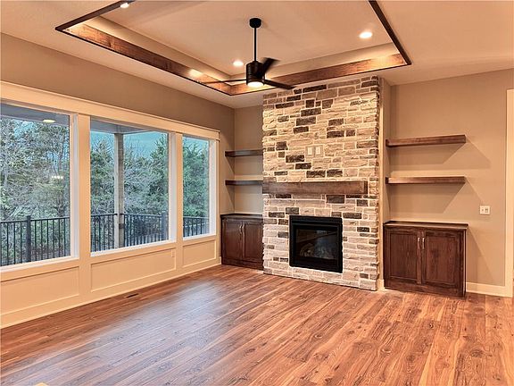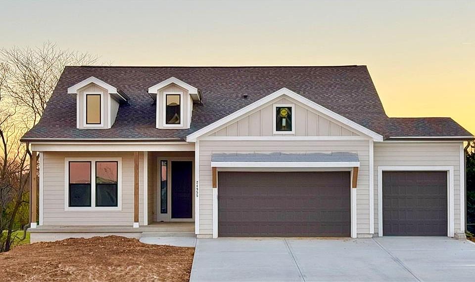 NEARLY FINISHED! Introducing the new Fairfield Expanded by Inspired Homes! This fantastic Reverse 1.5 Story now boasts over 3,000 SF and is situated TREED WALKOUT lot! This home includes an expanded 20’ low maintenance deck with aluminum railings, composite decking & stairs leading down to a lower patio. Inspired Homes also includes extra deep garages, 8’ garage & front doors, irrigation systems, garage openers, gas range cooking with built in SS appliances, low-e Pella windows and doors, custom wood cabinetry, tray ceilings; and the list goes on! Designer options for this home feature a lower level fireplace & wet bar, wood trim ceiling & wall details, upgraded lighting, upgraded quartz countertops, built-in cabinets & shelving in great room, direct access to laundry room from the primary closet, and a HUGE walk-in pantry! The Huntford community offers oversized 85'+ wide lots surrounded by mature trees and adjacent to Prairie Highlands golf course. Low HOA fees and less than 10 minutes from K7/I-35 highway and a short drive to Lake Olathe, Prairie Center Nature Preserves, KC Winery, and the NEW Cedar Niles Trail system!