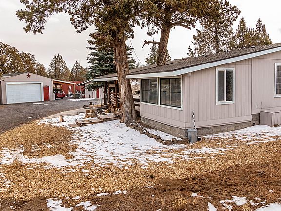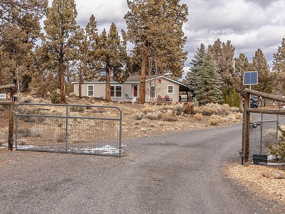 Nestled in a serene, rural setting 15 minutes east of Bend, OR, this charming 1,228 sq.ft. home on 4.67 acres offers a tranquil retreat. The property is fully fenced and gated with a circular driveway and a separate RV pad with full hookups. Inside, the home has an open floor plan, vaulted ceilings, wood stove, and fresh paint inside & out. With 2 bedrooms and a bonus room, the house is perfect for a family, guests, or as an office/hobby space. The kitchen is spacious with all new ceiling fans.