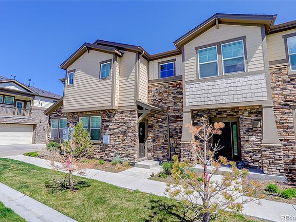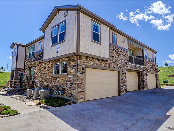 Take a look at this beautiful condo located in The Wheatlands. This home features 2 bedrooms, 2 baths with an open floorplan, and an entryway from the 2 car garage or the front door, then just up one flight of stairs to enjoy everything on one level. This home consists of a nice sized living space, a beautiful kitchen with a large island, stainless steel appliances, granite countertops, custom backsplash, beautiful pendant lighting, plenty of cabinet space and a nice size pantry. The primary bedroom is oversized with an attached bath and spacious walk-in closet. The additional bedroom and bathroom is also generous in size and is located off the adjacent hallway. The family room leads into a nice outdoor patio to relax after a long day! Enjoy the convenience of maintenance free living with extra perks! The HOA takes care of your grounds, snow removal up to your front door, sewer, trash and water. This home is close to The Southlands Shopping Center, E-470, Cherry Creek School District and so much more.