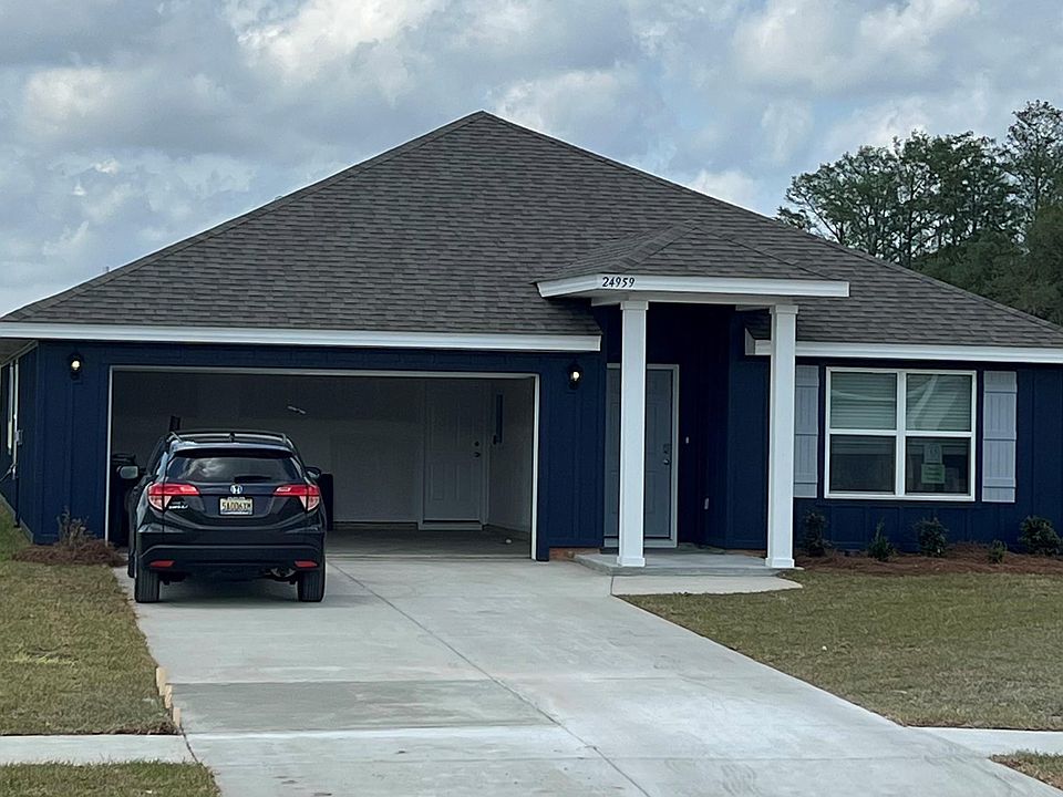 House is USDA, VA, FHA, & Conv. eligible... Ask about our DHI interest rates of 4.99% for Govt and 4.99% for Conv Loans Ponder Place, a new community in Loxley minutes from 1-10 and direct access to Hwy 59! A short drive to the beautiful sand beaches along with other Baldwin County attractions. Step inside this popular Cali floorplan located on one of the last spots on the cul-de-sac with a great view of the sunset over the pond! Enter the foyer where it leads to a fabulous open concept Living/Kitchen area featuring granite countertops, Frigidaire stainless steel appliances, a large pantry, and an island overlooking the spacious family room. The roomy primary suite features granite counter tops, undermount double bowl vanity, separate shower, soaking tub and large walk-in closet. The second, third and FOURTH bedrooms are to the front of the home, with a second full bath. Brand new and energy efficient, this home comes with thermal doors, Energy Star rated double pane windows, 14 SEER Carrier Heat Pump, and Home is Connected Smart Home technology. Hardie Board and Batten exterior with attached 2-car garage. Home is being built toward Gold FORTIFIED Home TM certification, which may save up to 50% on homeowner’s insurance. A 1-year builder's warranty and 10-year structural warranty are included. Pictures are of similar home and not necessarily of subject property, including interior and exterior colors, options, and finishes. Under construction. ...PLUS up to $3,000 towards closing cost if use DHI Mortgage House is USDA, VA, FHA, & Conv. eligible... Ask about our DHI interest rates of 4.99% for Govt and 4.99% for Conv Loans