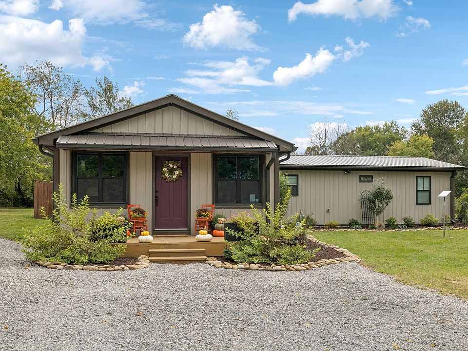 Take a look at this beautifully updated, move-in-ready cottage—a smaller home with big upgrades, completely remodeled in 2018 and thoughtfully maintained ever since! Totally remodeled in 2018 (752 SF) — taken down to the studs and rebuilt with quality finishes throughout. BIG-TICKET IMPROVEMENTS: - energy-efficient windows - metal roof & siding - HVAC - tankless water heater - updated electrical - updated plumbing - LED lighting - new septic lines(2022) - LeafGuard Guttering - LVP flooring throughout Open-plan living: living, kitchen, and dining all flow together in an open-concept layout Easy, functional layout: 2 bedrooms (primary bedroom has huge walk-in closet) 1 full bath BATHROOM DETAILS: - furniture-style double-sink vanity - tub/shower combo KITCHEN DETAILS: - white cabinets - butcher block countertops - stainless appliances including double oven smooth-top range, OTR microwave, dishwasher, and refrigerator Washer & dryer will convey OUTDOOR LIVING: