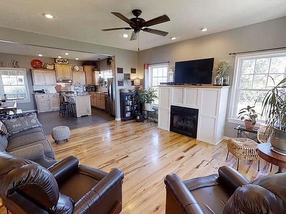Gorgeous Traditional style Country Home offers contemporary interior touches and 28 acres of serenity and views for miles. Natural light illuminates the Hickory Floor as you enter the living room and pass through the open floor concept into a spacious kitchen with center Island, beautiful maple wood cabinets and granite counter tops. Separate Laundry room doubles a mud room at the back of the home and the master bedroom on the the main level offers an extra large walk in closet. Light Maple wood continues into the staircase that will carry your weary guests or children to the upstairs level where we find 2 additional bedrooms and a 3rd bathroom. Large 30x40 Shop building has too many perks to list including electric and plumbing. Enjoy your privacy as the sun sets on the back deck.