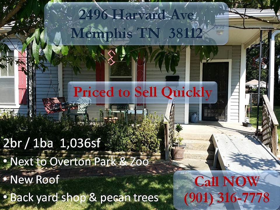 ONLY $15K for this house a street over from Overton Park and the Memphis Zoo. NEW ROOF AND GOOD LOCATION. Tenant is moving out in the next few weeks and this house has to be sold. Same owner for 40 years prior. House needs a little work but at this price it's a good deal.Will work with agents, rehab and rental investors, and home owners looking for a deal. NO WHOLESALERS!CHECK OUT THE VIDEO OF THIS HOUSE.FactsLot: 7,500 sqftBuilt in 1920FeaturesDeckFireplaceNice Shop in back yardConstructionRoof type: NEW Shake ShingleRoom count: 5# Stories: 1.0Structure type: BungalowOtherFloor size: 1,036 sqftLot depth: 150Lot width: 50Parcel #: 033016 00020