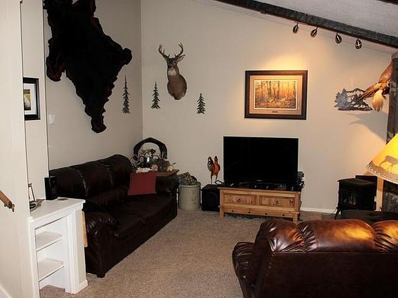 This charming 4-bedroom, 2-bath newly remodeled home comes with upgraded living in a country setting! You'll be greeted by an updated kitchen featuring a brand new Samsung appliance suite and custom built butcher block counter top over cabinets. The inviting vaulted ceiling living room is perfect for entertaining and keeping warm with the natural gas fireplace, as is the expansive downstairs recreation room with wood burning stove. The private 1.35-acre lot is wooded, has a wraparound driveway, and over 1,000 feet of buried invisible fencing for your 4-legged family members. Storage won't be an issue with partially finished/insulated garage and work bench, attached storage room, and additional garden shed. The front deck, back patio, and fire pit are ideal for the beautiful summer nights. The outdoor pet area is optional; it can remain or be removed. Other outdoor upgrades include a new overhead garage door and a freshly poured cement slab. This home is must see.