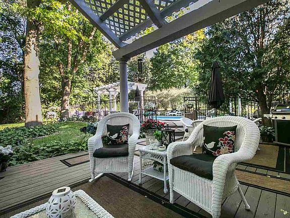 Grand all brick home on 2 corner private park like 0.65 acre lot w/mature trees. Completely furnished 20x40 GATED IN GROUND SWIMMING POOL, deck & side patio. Open floor plan, lg awesome entry, living rm, family rm w/wet bar, 2 fireplaces, formal dining room, granite kitchen, main flr laundry w/washer/dryer. Newer SS appliances; refrig, range top, dishwasher, trash compactor, built-in oven & microwave. 5 bedrooms includes a Lg master bedroom suite, 3 baths, media room, bonus rm & 3 car garage. Lots of storage, Newer HVAC system, gutters & downspouts. Security system. $410,000