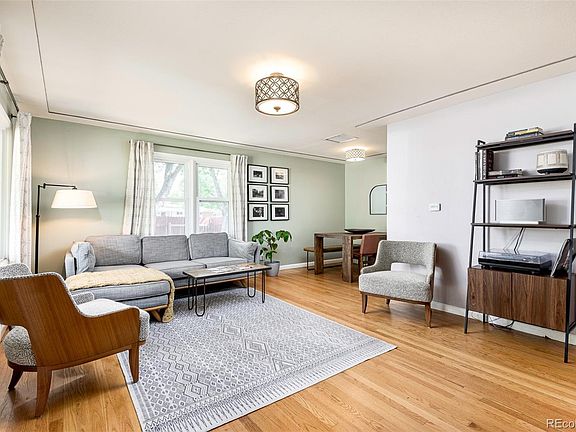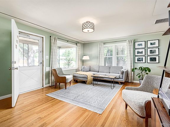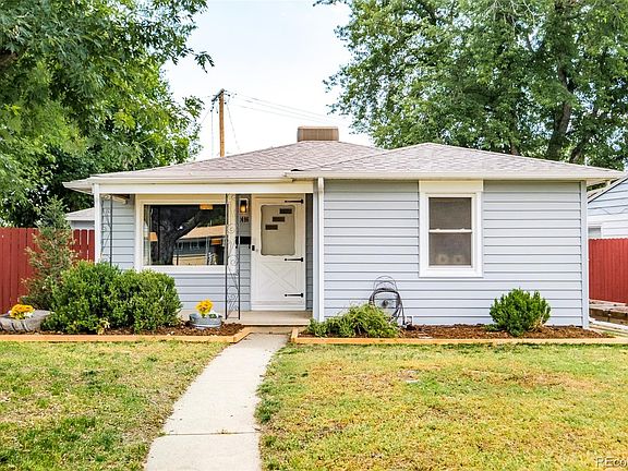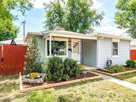 OPEN HOUSE Saturday July 29th 11-2pm. Welcome to this charming three-bedroom, one-bathroom home in Edgewater, featuring a detached third bedroom and a one-car garage, all situated on a spacious corner lot. As you approach the property, you’ll be greeted by magnificent mature trees providing shade and a lovely garden on the sunny south side. The exterior showcases newer siding and an inviting front porch. Step inside to discover warm hardwood flooring in the living room, seamlessly flowing into the dining area. The kitchen boasts white cabinetry, butcher block counters, and a fresh blue subway tile backsplash. The main house offers two comfortable bedrooms and a full bathroom located between the rooms. Additionally, the detached 240 square foot third bedroom provides versatile space for a work-at-home area, gym, or guest room, catering to your specific needs. Parking is made easy with the large driveway, and the detached one-car garage is conveniently connected to the house through a covered walkway that leads to the mudroom, where the washer and dryer are located. On one side of the breezeway is a gas fireplace and the other side has a fenced yard and a concrete patio for the table and chairs included with the sale. Bike-able to nearby attractions such as Edgewater Beer Garden, Sloans Lake, the Edgewater Public Market, and easy access to the excitement and job opportunities of downtown Denver.