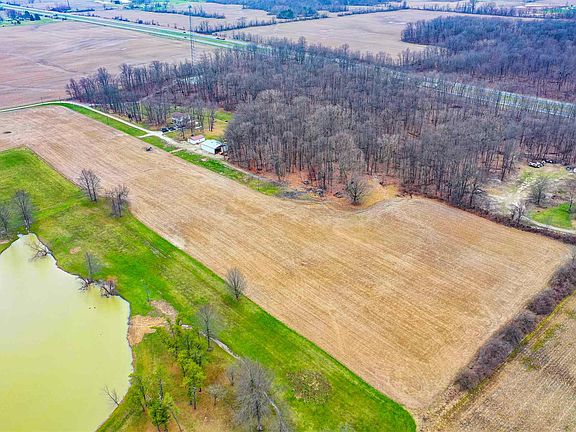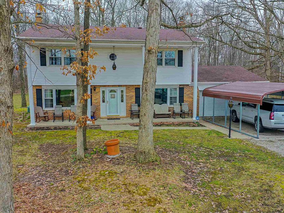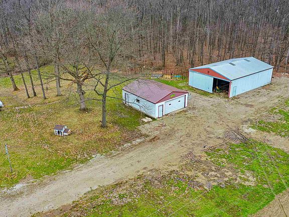 Property being sold "AS IS". Carport & dog pens do not stay. Seller retains right to care for/harvest crops planted at time of A/O. Enjoy your privacy while watching nature in motion as deer, turkeys and other animals regularly visit this beautiful wooded setting resting on 37A including approx 15.5A of farm land. This two-story home has a walk-out basement facing the woods plus attached 21x26 garage, 36x50 pole Barn & 24x30 detached insulated garage with metal roof & cement floor with both 110 and 220 outlets. Land has 2 wells, 1 for house (2010) and 1 near north farm ground (currently not used). Home has beautiful hardwood floors, 4 bedrooms, 2 full bathrooms, eat-in kitchen, formal dining room and den.