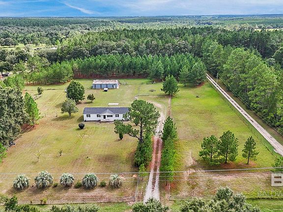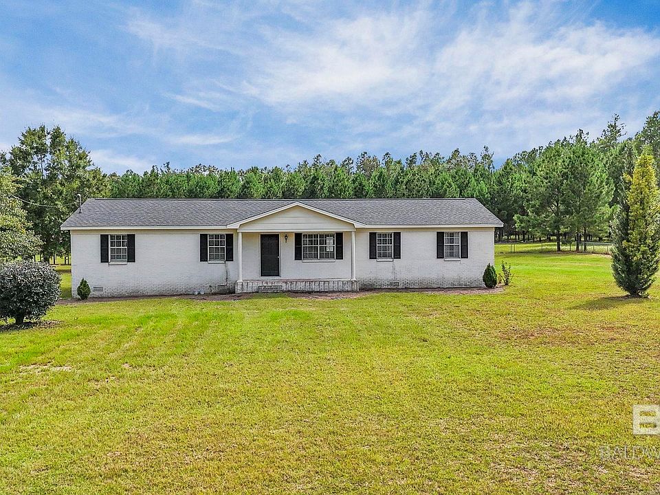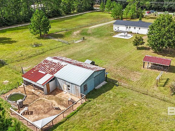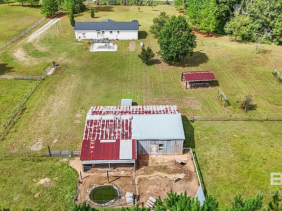 Updated 3 bedroom / 2 bathroom brick home on 6 acres with a barn in Summerdale. Enjoy the country life while still being close to Foley and Robertsdale. This home offers a large living room, primary bedroom with ensuite, a laundry/utility room with an outside entrance, plus a huge bonus room that can be used for an extra bedroom, homeschool, game room, hobbies, and more. The property not only has the barn with concrete flooring, but also an additional covered shed, excellent space for gardens, several fenced-in areas for all your farm animals, its own well, and a Bronze Certified 2021 roof. The spacious outdoor area makes this a perfect place for friends and family. Raise your family, run a small farm, or simply sit back and enjoy the peace and privacy of this beautiful property. Buyer to verify all information during due diligence.