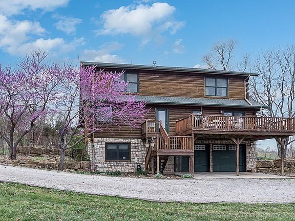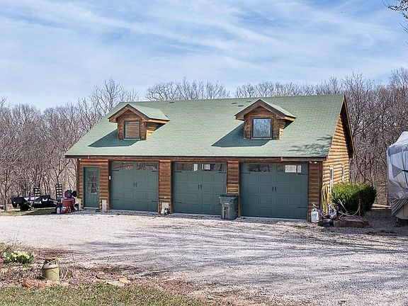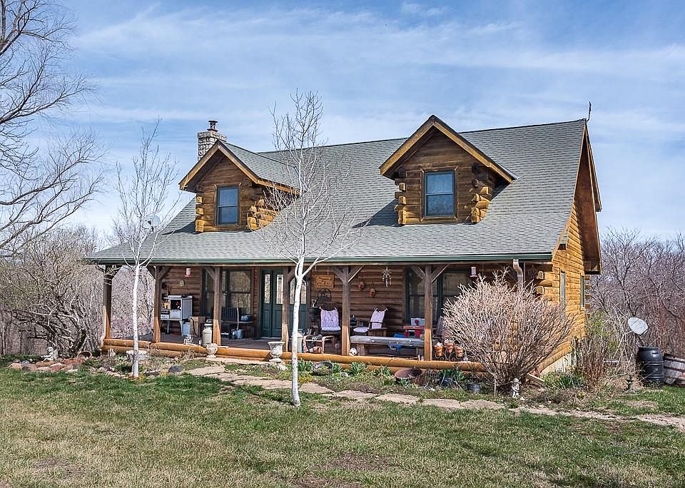 CHARMING 3-BEDROOM LOG HOME ON SCENIC 16.5 ACRES WITH A STREAM AND ABUNDANT WILDLIFE! This picturesque property offers the perfect blend of rustic charm and modern comfort. The warm and inviting home features an open floor plan with exposed wood beams, a cozy wood-burning fireplace in the living room, and a spacious country kitchen with an island and pantry. The main-floor master suite includes a walk-in closet and private bath with a jetted corner tub, separate shower, and double vanities. Enjoy the convenience of main-floor laundry. Upstairs, a loft overlooks the living room, accompanied by two additional bedrooms and a full bath. The walkout basement offers extra living space with a family room, office, and full bath. Relax on the covered front porch or entertain on the large back deck while taking in the beautiful scenery. An oversized attached two-car garage and a detached three-car garage provide plenty of storage. Nestled in a serene setting with a stream running through the property, this home is a nature lover’s dream. Don't miss this rare opportunity for peaceful country living!