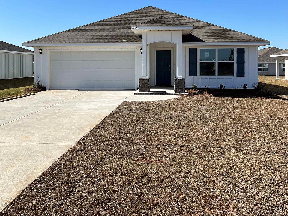 Ponder Place, a new community in Loxley minutes from 1-10 and direct access to Hwy 59! A short drive to the beautiful sand beaches along with other Baldwin County attractions. Step inside this popular Cali floorplan where the foyer leads to a fabulous open concept Living/Kitchen area featuring granite countertops, Frigidaire stainless steel appliances, a large pantry, and an island overlooking the spacious family room. The roomy primary suite features granite counter tops, undermount double bowl vanity, separate shower, soaking tub and large walk-in closet. The second, third and FOURTH bedrooms are to the front of the home, with a second full bath. Brand new and energy efficient, this home comes with thermal doors, Energy Star rated double pane windows, 14 SEER Carrier Heat Pump, and Home is Connected Smart Home technology. Hardie Board and Batten exterior with attached 2-car garage. Home is being built toward Gold FORTIFIED Home TM certification, which may save up to 50% on homeowner’s insurance. A 1-year builder's warranty and 10-year structural warranty are included. Pictures are of similar home and not necessarily of subject property, including interior and exterior colors, options, and finishes. Under construction. ...PLUS up to $3,000 towards closing cost if use DHI Mortgage.