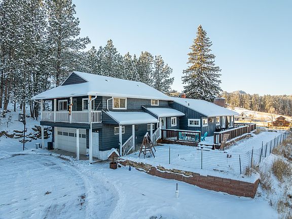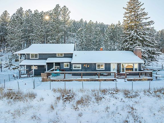 Charming Home with Breathtaking Views – A Rare Find on Coveted Sylvan Lake Road! Don’t miss this incredible opportunity to own a one-of-a-kind home with unmatched panoramic views of Castle Rock, Willow Creek Peaks, and the stunning valley in between! Nestled on a beautifully wooded lot just under two miles from Custer, this spacious 5-bedroom home (+ bonus den/office) blends history, comfort, and prime location. Built by Donald Clifford, the last living carver of Mount Rushmore, this home is truly special. Its thoughtful layout offers privacy and functionality, featuring: Private Master Suite + Two Additional Bedrooms Above the Garage; Main-Level Bedroom + Office/Den; and Lower Level with 5th Bedroom, Family Room, Laundry & Storage. Stay cozy and energy-efficient year-round with a highly efficient wood-burning furnace and newer Lennox heat pump/AC. And with NO COVENANTS, the possibilities are endless—make it your full-time residence or a lucrative short-term rental--or both! Sellers have rented out for Sturgis Rally for years. Outdoor highlights are wraparound Deck with spectacular views, garden space, abundant wildlife, treed lot and minutes to Sylvan Lake. Recent updates include new exterior paint (2023); new roof (2024), all new windows, new water heater, new well pump, couple of newly installed doors & Lennox Heat Pump is only five years old. A home with this much character, history & beauty is a rare find!