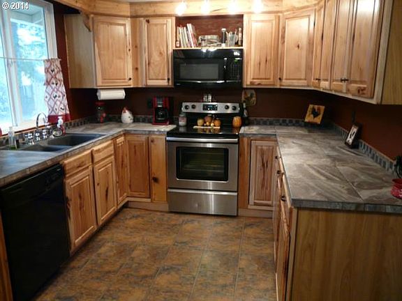 Nicely remodeled home on a quiet street. Hickory cabinets with tile countertops and backsplash in kitchen. Newer glass top range and dishwasher. Granite counters in bathroom. New water heater. Large living room and a family room with a woodstove insert. Slider in the family room to the deck and fenced back yard. Newer roof and paint. RV Parking.