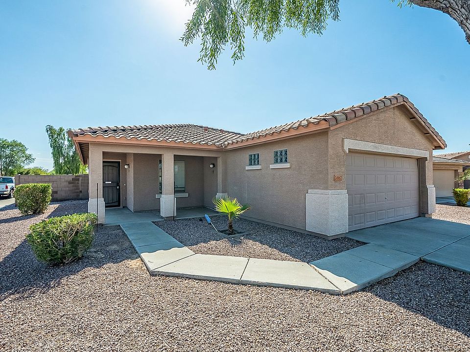 PLEASE RESPECT TENANT LAWS AND DO NOT DISTURB CURRENT TENANT. SHOWINGS AVAILABLE AFTER 9/30. *Corner Lot* Welcome to this charming 4-bedroom, 2-bathroom home perfectly situated on a desirable corner lot in the sought-after Dove Cove Estates community. This thoughtfully designed home offers the ideal blend of style and functionality with an open-concept layout that maximizes space for relaxation, entertainment, and creativity. Move-In Costs: $1,800 security deposit 1st Months Rent $200 Admin Fee As you step inside, you'll find a bright living room that flows seamlessly into the kitchen and dining area, creating a welcoming space for gatherings. The kitchen is a chef's delight, featuring modern stainless steel appliances, quartz countertops, ample cabinetry, a tile backsplash, and a deep farm-style sinkperfect for all your culinary needs. The master bedroom is a true retreat, offering an en-suite bathroom with a beautifully tiled shower and sleek, modern finishes. Each of the additional bedrooms is generously sized and designed with storage in mind, making it ideal for family or guests. What sets this property apart is the expansive premium corner lot. The backyard is a private oasis, complete with low-maintenance artificial grass and well-placed pavers, perfect for entertaining or unwinding in your own peaceful outdoor retreat. Conveniently located in the rapidly growing city of Buckeye, you'll enjoy easy access to local amenities, shopping, dining, and entertainment options. The scenic surroundings and close-knit community atmosphere make this home the perfect place to settle down. Don't miss the chance to make this beautifully upgraded home yours. Schedule a viewing today and imagine the possibilities that await! Additional Disclosures: Real Estate Brokers of Arizona, LLC does business in accordance with the Fair Housing Act and does not discriminate based on race, color, religion, sex, handicap, familial status, or national origin. The information in this ad is accurate to the best of our knowledge. Real Estate Brokers of Arizona, LLC is not responsible for any error or omission in the wording or content of this listing. Lease Terms: - 12-month minimum lease - No smoking - Must comply with HOA and city regulations - Renter responsible for all utilities (water, sewer, trash, gas, and electricity) - Required leasing fees include a 3% admin fee and 2% City of Buckeye rental tax Offered by Real Estate Brokers of Arizona. Our occupancy guidelines require a combined gross income of at least 2.5 times the monthly rent. Self-employed applicants must provide tax returns from the last two years, and may also be asked to submit bank statements for verification. We conduct a thorough background check on all adult tenants over the age of 18. Please note that we are unable to accept applicants with open bankruptcies. Pets are subject to owner approval and may require a non-refundable pet fee of up to $250.