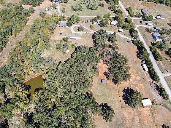 Nestled in a serene 10-acre setting, this extraordinary property masterfully blends natural beauty with equestrian infrastructure and livestock facilities. The estate boasts a picturesque pond, a spacious 3-bedroom, 2-bathroom residence, and a 3-car carport with an attached 8x16 spray-foamed meat cooler and a 22x16 spray-foamed climate-controlled room. Meat processors will value the electric winch and weight scales, specifically designed to meet their needs. The property is supported by two wells and two septic systems, as well as separate electric meters. Additional features include a wood shop and various outbuildings. Situated outside city limits, but still close to major highways and town, the property presents a unique blend of wooded areas and pastureland, offering a prime opportunity for creating a self-sufficient homestead.