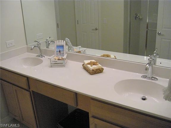 This beautiful Sandoval home is a Pulte Villa built in October 2012 with 3 beds, two baths, 2 car garage and 1515 sf of living area. It is available for rent from April to November 2015. The home features a gorgeous kitchen with granite counters and upgraded stainless steel appliances with a good sized pantry. The master bedroom is a generous 11.25' X 15' with a large walk in closet and the master bath offers a walk in shower with cultured marble double vanity. The great room is a spacious 12.75' X 22.5' and has sliders leading out to the screened in lanai. The private lanai overlooks a tranquil setting of palms that line the rear of the property. If you become tired of lounging on the lanai, the home is a short walk to the community pool, basketball, tennis, volleyball and Sandoval's newest amenity twin 90' X 13' bocce ball courts with a shaded seating area that also overlook the children's playground. Leases of six months or less are subject to 11% Florida Tax.