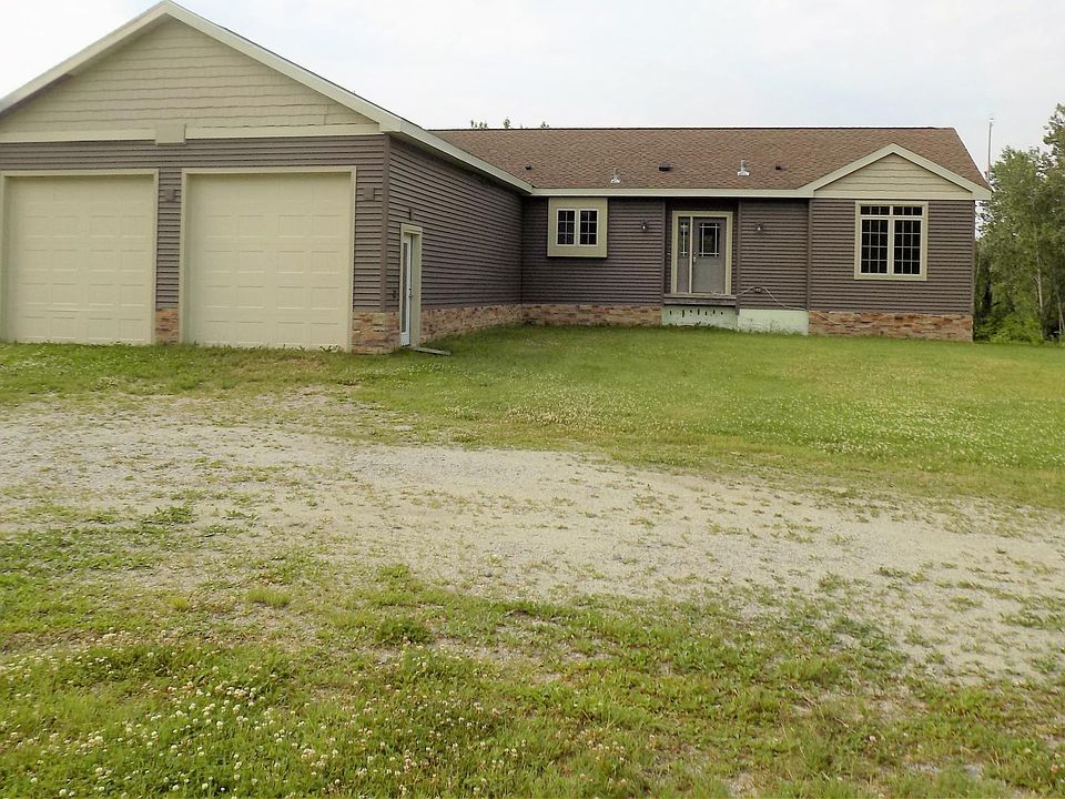 5 Bedroom, 3 bath home in the country. 3,584 finished SF. Attached 36' x 26' attached garage, on 32 acres. Fireplace in living room, walk-in closet in main bedroom, celling fans. Rapid River runs through the property with a dock over the river.