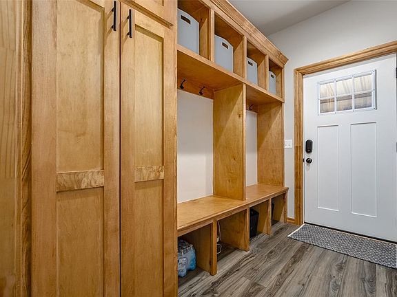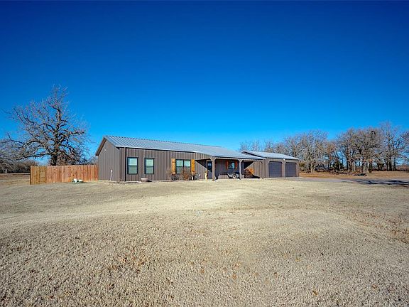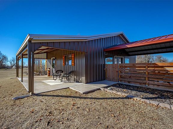Come see this like new barndominium on 2.5 acres in Blanchard. The outside of the home features a storm shelter, wooden privacy fence, and large covered patio area between the home and a 30x24 - 2 car garage with electric door openers for both garage doors. Inside you will be greeted with built-in cabinets and shelves with lots of room for storage and a beautiful mud bench area. This open concept living / kitchen is perfect for entertaining guests with large picture windows looking out to covered patio. Granite throughout the home with stainless steel appliances in the kitchen. Living has shiplap, built ins and shelves with electric fireplace. The primary suite has a gorgeous accent wall and separate double vanities in the bathroom, walk in shower, and a large walk-in closet. Nice size secondary bedrooms with one having a walk-in closet.