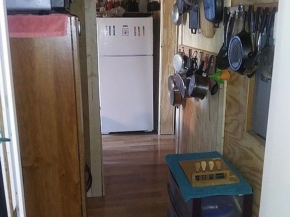 2 bedroom 1 bath Bungalow on 5.8 acres Recently Remodeled and added onto this Home has Board and Batten mixed with TI-II siding with good paint and a Metal Roof and New Double Payne Windows. Wood Space Heater is primary heat. Kitchen Appliances included are Freestanding electric Range/Oven and a Refrigerator. Washer/Dryer Hookups in Kitchen. Nice 5x8 Pantry. Mostly wood decor with some custom Tile work. Covered Front Porch/Deck is 10x15 with a 5x16 private back deck. Detached garage/Shop 14x24 has electric and dirt floor-attic storage. 7x12 and 12x12 wood shed/storage buildings. Garden Spot. Mostly wooded land slopes away from the home. Great Hunting, pond.