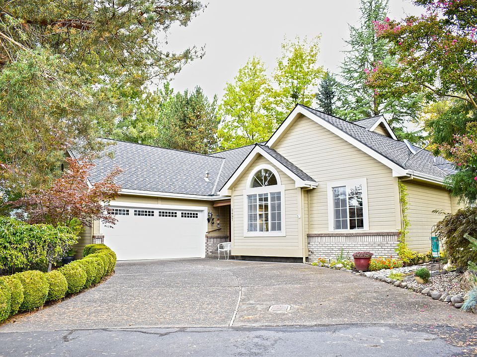 Warm & elegant, this contemporary home has an open floor plan, beautiful cherry wood floors, vaulted ceilings, gas fireplace and a mix of both traditional & modern finishes throughout. The 3 beds and 2 full bathrooms include a lovely primary suite with a double vanity, tub and walk-in closet, plus access to the generous wrap-around deck. This home gets tons of natural light and is located on a cul-de-sac in the quiet, meticulously maintained Sun Oaks gated community. Enjoy the beautiful park-like setting in your own backyard! Monthly HOA is approximately $145+/month and includes access to two community pools, two clubhouses & tennis courts.