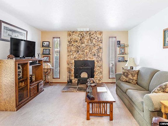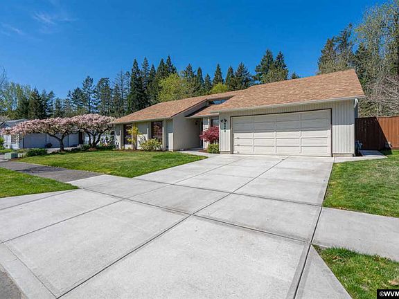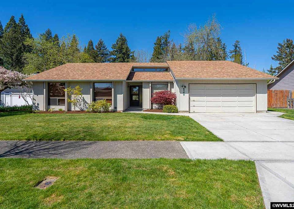 One level living on .35 acres of park like manicured lawn with a wooded backdrop for privacy! Formal living room, vaults for natural lighting, large kitchen with recessed lighting and opens to family room with wood stove and slider to covered deck. Master with private bathroom and slider. Inside laundry room, oversized garage, new concrete driveway, all new windows. Close to schools and parks on a quiet sidewalk lined street. Extremely well maintained, easy to show.