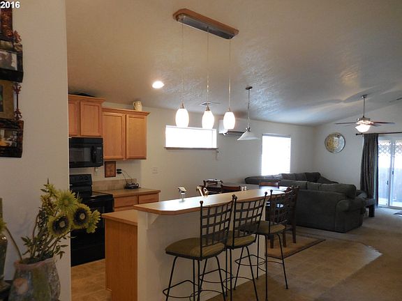 Newer single level home located on corner lot. Light open floor plan w/ vaulted ceilings and attached 2 car garage. Master bedroom w/Master Bath - double sink & walk-in closet, oak cabinets, raised vanities, black appliances, vinyl windows, ductless heat-pump for heating and cooling + F/A Heating, hobby room off of the garage, front yard is landscaped, w/ sprinklers, covered back deck and a small side yard.