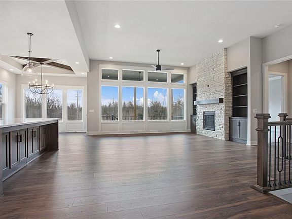 The “Windsor” plan by Inspired Homes at Lakeshore Meadows! The largest Reverse 1.5-Story plan offered. The main level features a spectacular Great Room (open to the Kitchen) with soaring ceilings and impressive oversized windows. Spacious and open with TONS of wow factors: Floor-to-ceiling stone fireplace and built-in bookshelves in the great room; oversized island in the designer kitchen; enormous walk-in pantry; finished lower level with a FULL wet bar and private 5th bedroom; deluxe Primary bathroom with freestanding tub and zero entry shower! Enjoy the mature trees and adjoining greenspace from your oversized covered composite deck! Less than 10 minutes from K7/I-35 highway and a short drive to the Lake Olathe recreation center, Prairie Center Park, KC Winery, and the NEW Cedar Niles trail system. You don't want to miss this one! *Pictures displayed are of a previous model home. Finishes may vary.