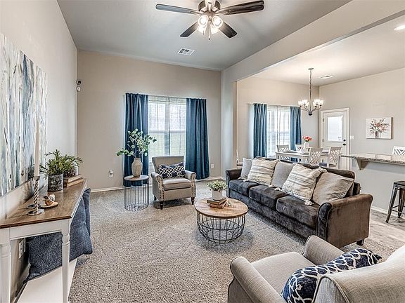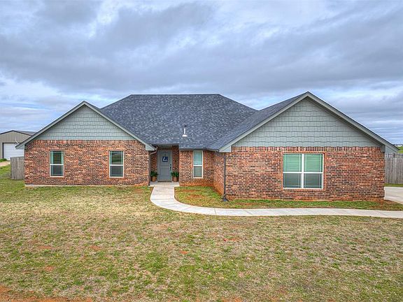 THIS PRICE in Cashion Schools is RARE!!! Don't miss your chance to call this 1 acre (mol) your very own! Located only 1 mile from the school and amidst friendly neighbors you will never want to leave. Enjoy backyard BBQ's and endless tournaments of cornhole in your huge new backyard. You won't have to worry about saving up funds since the seller has already paid the $20,000 to install the 6' wooden privacy fence around the enormous backyard!!! When you do decide to go inside you will immediately fall in love with the high ceilings and light neutral finishes throughout the home. The open concept layout is wonderful for entertaining and just enjoying family nights at home. Cook dinner while listening to everyone's day. Help with homework at the large center island. The master suite feels very private on its own end of the home. It also has a double vanity and a large walk-in closet. The opposite side of the home houses the 3 additional bedrooms and a full bathroom. This home has it all including granite countertops, a new upgraded dishwasher & garbage disposal (both in Feb. of 2024), fiber internet to the house, security system, stainless steel appliances including a refrigerator, home-builder warranty remaining until October of 2024, fun back porch hanging swings and so much more!!!
