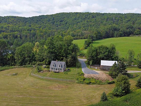 This charming cape sits on 2.65 acres, perfectly positioned to capture breathtaking mountain views through the many thoughtfully placed windows throughout the home. Step inside to find a functional mudroom/laundry area that leads into a well-designed U-shaped kitchen, complete with a large pantry. The kitchen flows seamlessly into the dining room, where you can savor your meals while soaking in the stunning landscape. The first floor also features a cozy living room with a stone hearth and wood stove, a comfortable bedroom, and a full bath. Each floor is zoned for heat including the basement. Step out onto the rear deck, an ideal spot for BBQs and outdoor gatherings. Upstairs, you’ll find two generously sized bedrooms, both with walk-in closets, offering ample space and comfort, the bathroom has a whirlpool jet tub. Beautiful hardwood ash floors throughout. The full walk-out basement is partially finished with a full bath and provides excellent storage options and potential for additional living space. For those who appreciate a rural lifestyle, the property includes a barn with storage, stalls, and a fenced area—perfect for animal lovers. Enjoy picking your own rhubarb, asparagus, and mulberries from the property. With a newer roof and a backup generator, this Vermont home offers both beauty and practicality, making it a place you’ll love to call home.