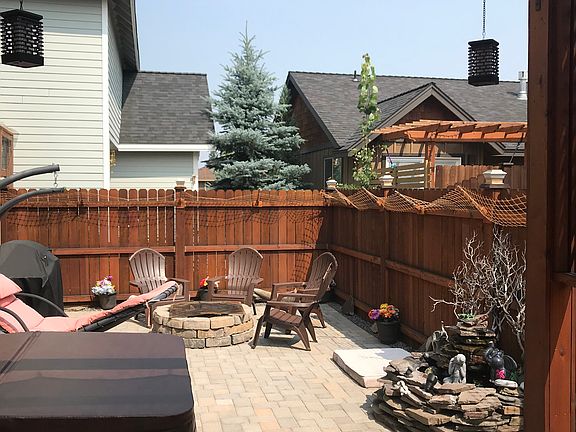 Two-story, oversized garage with 4 bedroom, 2 1/2 bath home with a fire pit, hot tub and paver patio next to a deck with a pergola! The home has solar added as well, making the electric bill practically non-existent!