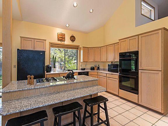 Price reduction! Lg. custom home, half-acre secluded/private treed lot in NW Bend. Dead end street w/no thru traffic. Great room w/ soaring vaults, 3 gas fireplaces, wet bar and lg dining area. Lg. open kitchen w/Jenn Air appl., dbl oven, granite island, second dining area. 2 master suites. Main level suite has lg. walk in and separate bath. Upper master suite has extra Murphy bed, lg. walk-in, extra storage and walk out deck. Wrap around decks, mtn. views, fenced. Acc. to Quail Pk. One of a kind location.