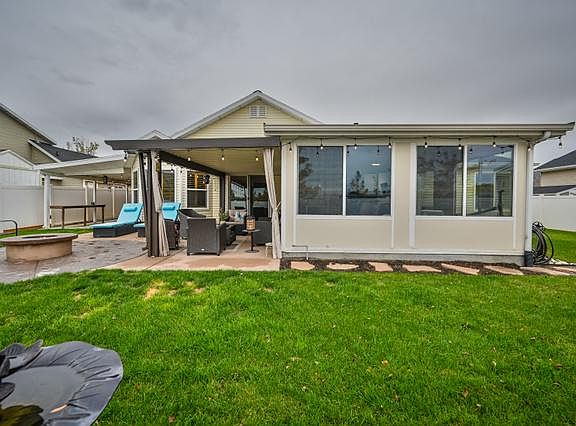 Stop the search! This home has upgrades galore including laminate flooring throughout, beautifully updated bathrooms, newer windows, roof, Lennox HVAC system and kitchen appliances. Plenty of prep-space on the granite kitchen island with bar seating. Spacious pantry with custom barn doors and shelving. Plantation shutters add to the charm of this home. Step out into the fully fenced backyard that has been newly landscaped with a brand-new auto-sprinkler system, garden box and gas firepit surrounded by stamped concrete. Wait - there is more a 15x18 sunroom, jelly fish lighting, paid solar panels and extra parking or patio space under the covered carport. Hurry over and see for yourself.