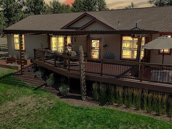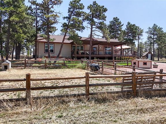 Get away from it all! This treed 79.14 acre property sits atop the ridge of the beautiful Bijou Basin! This offering exemplifies peace & quiet and serenity*Upgrades abound, starting with a new leach field, newer well pump, $20k in Andersen windows & slider, remote blinds, luxury vinyl flooring, whole house water filtration system, reverse osmosis at sink, light fixtures and fans*Upgraded landscaping and water feature*Two Behlent type buildings; 30x60 with concrete, electric and 12' overhead door, 30x40 with gravel, electric and 12' overhead door*30x20 tin barn for your animals*Beautiful outdoor living spaces*Multiple dog runs*Located on a county maintained road*Just 13 miles out of Kiowa*Come and find your retreat!