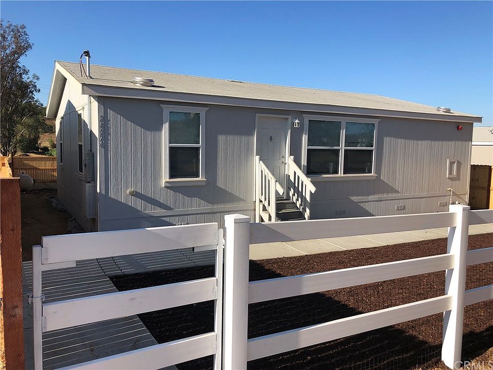 Coming Soon! Perfect charming home with nice open floor plan. Beautiful front fenced yard with lush grassy area and front curb appeal are just the start to this charming home. You will love the open floor concept with upgraded kitchen featuring a large island with farmhouse sink, lots of cabinets and all open to the living area. Two bedrooms with full bath that also has newly designer sink and mirror are separate from the nice large master bedroom with full bath. Good size laundry area with extra storage shelving leads to the beautiful backyard. Sit back and enjoy the covered patio with lights and ceiling fans while you enjoy the mountain views. The backyard features an outdoor designer sink area for gardening, A huge new custom built storage shed, fire pit, sand area with children's play set, and lush grass area. You can get away from all the city noise and enjoy a bit of country living here. Zoned RR. Located in Menifee school district and mailing address is also considered Menifee. This property truly shows owners pride throughout.