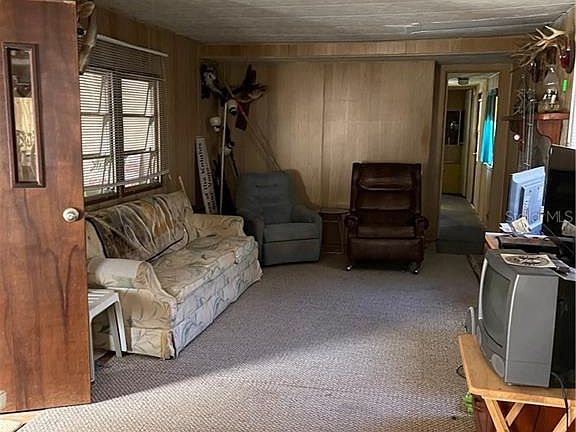Hard to find .89 acre property bordering the Ocala National Forests. Located minutes to Lake Delancy Campground day use area and short drive too off road trails for Jeeps, Side-by-Sides and 4 wheelers. Salt Springs Campground and Run are 10 minutes away and St. Johns River is close by as well. The mobile home was built in 1972 and does need work but there are good bones there to work with. Home is 2 bedrooms, 1 bathroom and 732 living square feet with 10'x33' addition on the front. Home and addition show signs of roof leak and seller said no leaks at this time. Garage is 36'x28' enclosed with two garage doors and includes power panel, with a 18'x19' carport attached. Lot size has plenty of room for RV or 5th wheel with two entrances. Located in the heart of the Ocala National Forest w/ beautiful Salt Springs swim area, boat launch and short ride to Lake George and the St. Johns River. Salt Springs is also home to miles and miles of ATV/SxS, Horseback and hiking trails. Great fishing year round in the many lakes, rivers and forest ponds, and don't forget about the excellent hunting too. Close to local shopping including grocery store, Dollar General, hardware, gas station, great restaurants, entertainment and more. Only short 30 minute drive to Ocala or Palatka for all your needs.