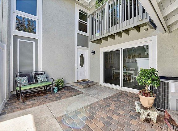 Charming 1700 SqFt 3 bed/2.5ba home. Gated w/community pool, spa & sport court. 2-car garage with full driveway, gated private courtyard w/pavers welcomes you into this charming home. Step into the Family room w/hardwood flooring, note the garden window w/seating peering to the rear yard & a granite faced fireplace. Formal dining area has a single French Door leading to the rear yard, hardwood floors & custom light. Move into the Kitchen; custom paint w/warm gray on the lowers & white on the upper cabinetry: drawers are deep & hold hidden drawers for cutlery, 2-lazy Susan cabinets, pantry w/roll out shelves. Counters are Quartz w/white tile backsplash, crushed granite sink w/nickel faucet & all Stainless Steel appliances. Move through kitchen to breakfast nook w/sliders opening to the entry courtyard. Ascend stairs to sleeping quarters, each room is spacious w/ample closet space, custom paint & ceiling fans, addt'l insulation, AC & whole house fan. Private balcony of Trex material is accessible by sliders in Guest Room. Full guest bath is remodeled w/charming vanity, lighting, flooring & paint. Master bedroom finishes this home, w/private balcony overlooking the greenbelt, a large closet w/organizers, all neutral colors & access to the remodeled bath w/jacuzzi jet tub, white tile brick lined walls, custom vanity w/marble top & dual sinks, farm style lighting & inset Pottery Barn medicine cabinets. Close to excellent schools, dining & shopping - Don't miss this opportunity!