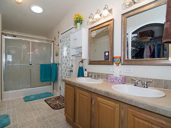 Custom upgraded lovely home on 1.17 acres. Ground set with a stem wall. Engineering certification on record from June 27, 2013. Open large split floor plan.Newer stainless steel appliances in open kitchen with breakfast bar. Reverse osmosis system under kitchen sink Large master bath with two sinks, and large walk-in shower. Fenced backyard with privacy. Detached 4 car garage with 220, water, and wood stove. 242' off pavement. ABRA water Co.