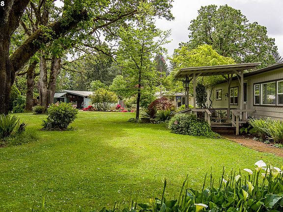 Look no further for a family property! 2.40 acres, 2 manufactured homes (one a hardship) -- beautiful acreage, 2 two car garages, out buildings, artist's shop, and much, much more! The other is a 1972 MH in excellent shape! 2 wells, an abundance of fruit trees, blueberries, RV hook up. Fern Ridge and farms nearby. One of the most beautiful park-like settings around!