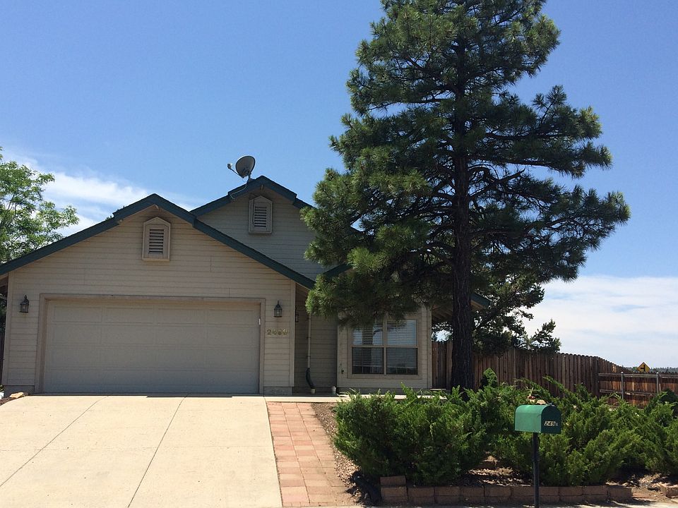 This beautiful home offers a nice open floor plan with vaulted ceilings, a plant shelf and a modern gas fireplace. The spacious kitchen is bright and sunny and offers views of Mount Elden. The master bedroom offers french doors that open up to the private covered patio, a large walk in closet and a bonus closet. The nice big backyard has great potential and offers a covered patio. The laundry is in a separate room with built in cabinets and a full size closet with lots of storage.