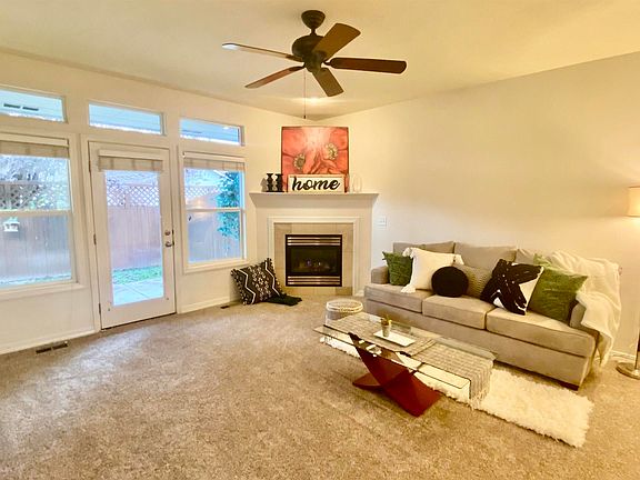 Single level Meridian townhome built by Ted Mason. Home features high ceilings, sky lights, fresh paint and new carpet throughout the home. Includes three bedrooms and two baths with a split floor plan. Located near shopping and Tully Park in the Tully Cove subdivision. This home offers low maintenance living with included front/back yard mowing & snow removal when needed. Home will be listed and ready to view on 10/27, with open house 10/30 from 10-12.