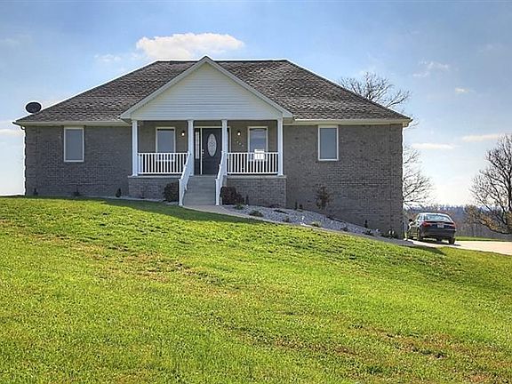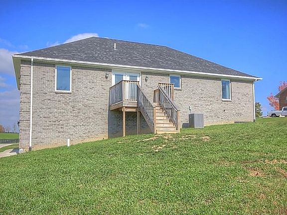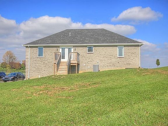 This gorgeous less than 2 year old energy efficient custom built home is move in ready! All brick ranch home on an acre & a half of gorgeous KY land w/amazing views of farmland & the foothills of the Appalachian mountains. Hardwood living room is open to the dining room & kitchen. Chef's kitchen to get excited about! Island, lighted pot rack, DOUBLE OVENS, stainless appliances & granite counter tops. Split BR floor plan w/all bedrooms having walk in closets. Master ensuite is truly a special retreat for any home owner... tiled walk in doorless shower, large soaking tub, double sinks, linen storage, walk in closet. Basement is finished w/family room/theatre space (wired already), gym/flex space and mechanical room for extra storage. 2 Car + garage measures 22'9'' in length. Storage building, covered front porch & low utility bills ($174/month average for past 12 months). Attic fan is ideal for opening crank out windows & enjoying the country! Located 1.5 miles from I-75 exit 77!