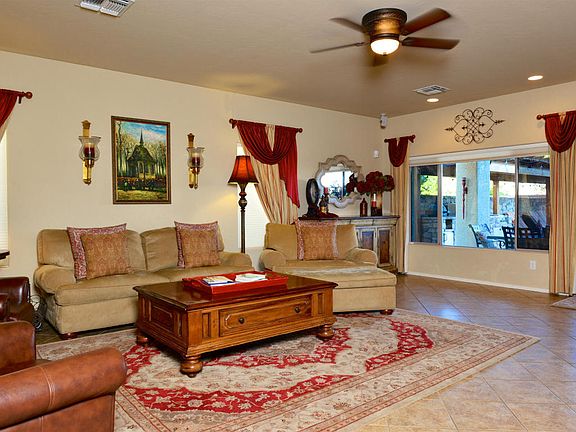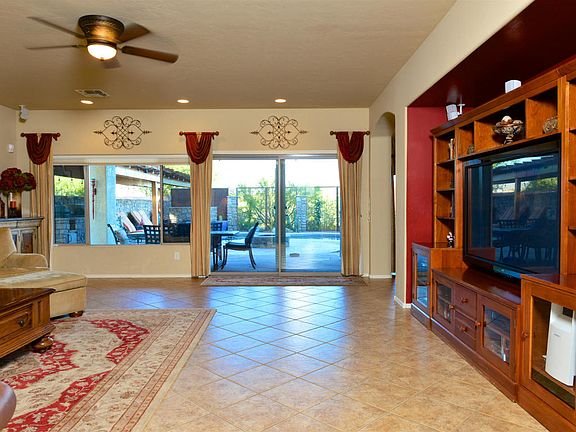 Stunning Executive Residence located on the East Side with Gorgeous Mountain views. As you enter the Custom Wrought Iron security Door you view through to the professionally designed back yard with covered outdoor Kitchen with gas BBQ,a green egg Smoker and lots of storage. Entertain on the large covered patio and enjoy the gas fire pit and lighted pool. Play area on side for kids. Inside you will enjoy the the remodeled Gourmet Kitchen with Professional full size Fridge and Freezer. Granite counter tops, Stainless Steel appliances. Custom Island, double ovens and beverage fridge. Private Deck off Master Suite with Hot Tub and intimate sitting area. Efficient designed laundry rm. Hardwood and Tile flooring. Custom window treatment,lighting and security doors. New Painted exterior.